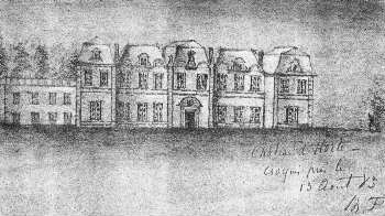 de cette époque. Nous avons eu la chance inespérée de pouvoir disposer d'un précieux dessin, exécuté en 1885 par un membre de la famille de Ferrières, et que le colonel de Ferrières a eu l'extrême complaisance de nous prêter. Nous y voyons le château encore intact, et nous pouvons mesurer son importance tout autant qu'admirer la perfection de son style néo-classique. |