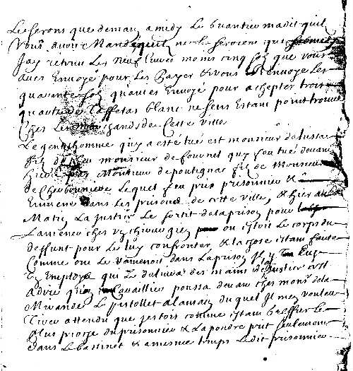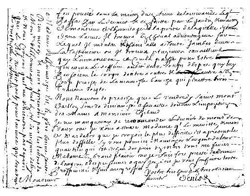 (1), où il trouva plusieurs cavaliers qui l'emmenèrent. .... Votre très humble et obéissant serviteur, Denis". (Archives de Ferrières) |