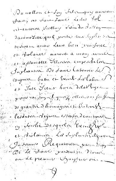 "... et encore icelui sieur du Vallon d'animosité qu'il porte aux suppliantes, désirant avoir leur bien par force et violence, aurait à main armée et assemblées illicites empêché les suppliantes de faire labourer leur vigne , battre et ensemencer les labours et jeté iceux hors de ladite vigne, pour raison de quoi elles ont souffert de grands dommages et intérêts, les dites vignes étant demeuré en souche..."